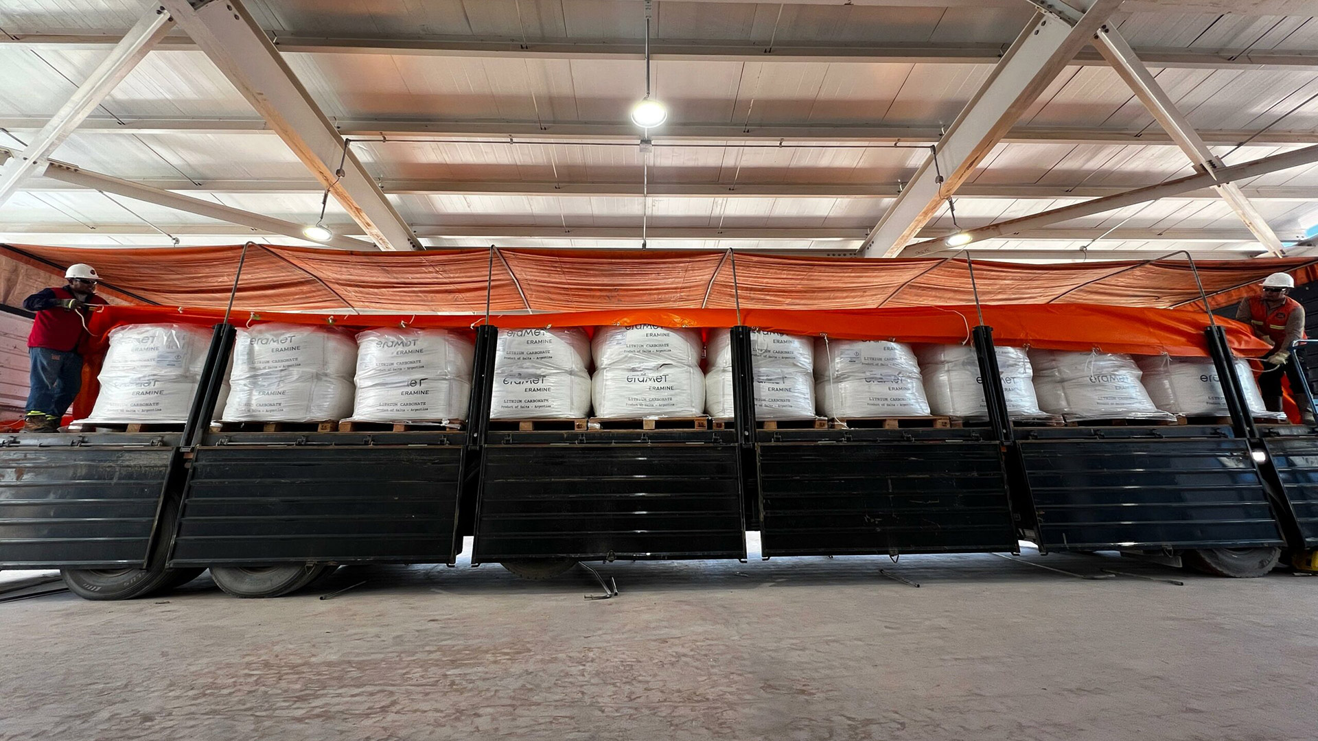 The shipment of 40 tons of lithium carbonate is being transported through the Port of Rosario, following a 1,580 km logistical route from the Centenario-Ratones salt flat.